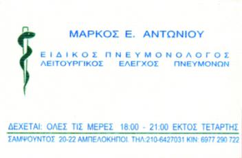 customer tabsΕπικοινωνίαΩράριο: Καθημερινά 18:00 -21:00 εκτός ΤετάρτηςΠνευμονολόγοι - ΦυματιολόγοιΥγείαΣαμψούντος 20 -22 & Μεγ. Σπηλαίου, ΑμπελόκηποιΑΜΠΕΛΟΚΗΠΟΙ ΑΤΤΙΚΗΣΑΤΤΙΚΗ 2106427031 6977290722 Το προτείνω (έχει προταθεί 0 φορές) ΦωτογραφίεςFacebook LikeShare on FacebookTweet Widget