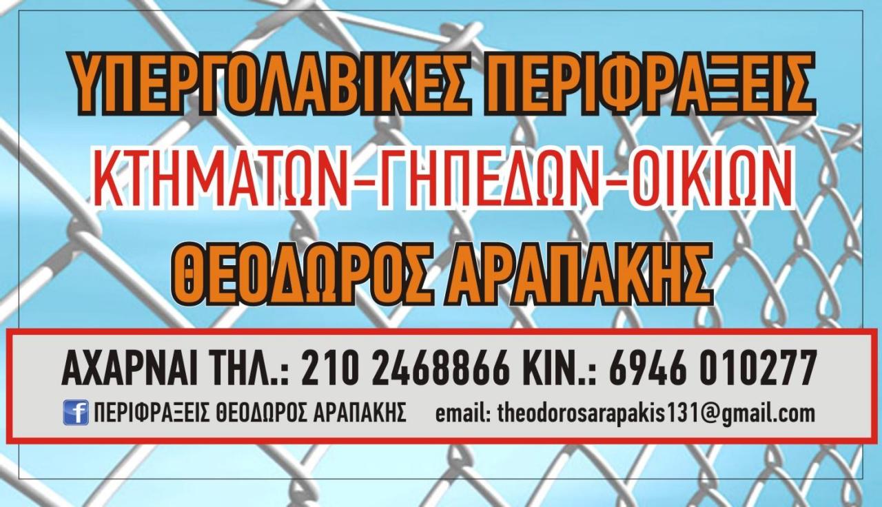ΠΕΡΙΦΡΑΞΕΙΣ ΣΥΡΜΑΤΟΠΛΈΓΜΑΤΑ ΘΕΟΔΩΡΟΣ ΑΡΑΠΑΚΗΣ ΜΕ ΠΑΝΩ ΑΠΟ
