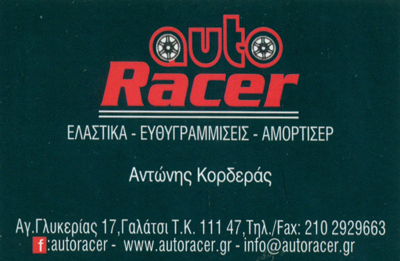 customer tabsΕπικοινωνίαΗ εταιρεία μας δημιουργήθηκε στον χώρο των ελαστικώνπριν 20 χρόνια και δραστηριοποιείται στα ελαστικά,στις ευθυγραμμίσεις, στις επισκευές και βαφές ζαντών,στις αναρτήσεις, αμορτισέρ και ό,τι αφορά τον τροχό.Λάστιχα ΑυτοκινήτουΑναρτήσειςΕυθυγράμμισηΑμορτισέρΖυγοστάθμισηΕπισκευή ΖαντώνΕπισκευή ΕλαστικούΗλεκτροστατική ΒαφήService ΕλαστικώνΤροχοίΕμπόριο ΕλαστικώνΦθηνά ΕλαστικάΠροσφορές ΕλαστικώνBridgetsone - Michelin - Goodyear - Pirelli - Continental - Dunlop Ελαστικά και ΖάντεςΕυθυγραμμίσεις - ΖυγοσταθμίσειςΒουλκανιζατέρ ΕλαστικώνAUTO - MOTOΑγίας Γλυκερίας 17, ΓαλάτσιΓΑΛΑΤΣΙ ΑΤΤΙΚΗΣΑΤΤΙΚΗ 2102929663 6974816063info@autoracer.grwww.autoracer.grAutoracer Το προτείνω (έχει προταθεί 0 φορές) ΦωτογραφίεςFacebook LikeShare on FacebookTweet Widget