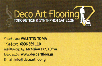 customer tabsΕπικοινωνία Τοποθέτηση & Συντήρηση ΔαπέδωνTοποθέτηση Laminate Τοποθέτηση Βινυλικών Δαπέδων Lvt - Loose LayΤοποθέτηση Καδρονιάριστα Δάπεδα Τοποθέτηση Κολλητά - Πλωτά ΠρογυαλισμέναΤοποθέτηση Ξενοδοχειακή ΜοκέταΤοποθέτηση Μαρμάρων & Πλακιδίων Ειδικές Κατασκευές Τοποθέτηση Δαπέδων Εξωτερικού ΧώρουΔάπεδα - ΠατώματαΔόμηση - ΚατοικίαΑγίου Μελετίου 177, ΑθήναΑΘΗΝΑ ΑΤΤΙΚΗΣΑΤΤΙΚΗ 2108326644 6996869110info@decoartfloor.grwww.decoartfloor.gr Το προτείνω (έχει προταθεί 0 φορές) ΦωτογραφίεςFacebook LikeShare on FacebookTweet Widget