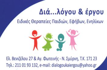 customer tabsΕπικοινωνίαΛογοθεραπεία - ΕργοθεραπείαΕιδική ΔιαπαιδαγώγησηΣυμβουλευτική ΓονέωνΠαιγνιοθεραπείαΠαιδοψυχιατρική ΕκτίμησηΨυχολόγοιΥγείαΒενιζέλου Ελευθέριου 27, Νέα ΣμύρνηΝΕΑ ΣΜΥΡΝΗ ΑΤΤΙΚΗΣΑΤΤΙΚΗ 2110193132 6947268917dialogoukaiergou@yahoo.gr Το προτείνω (έχει προταθεί 2 φορές) ΦωτογραφίεςFacebook LikeShare on FacebookTweet Widget