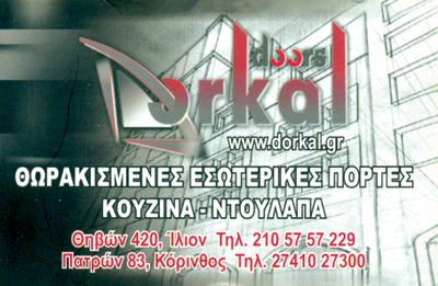 customer tabsΕπικοινωνίαΗ εταιρεία DORKAL δραστηριοποιείται στο αντικείμενο της πόρταςστην ευρύτερη του μορφή από το 1995.Η πολυετής εμπειρία μας επιτρέπει να καλύπτουμε κάθε προτίμησηόσον αφορά την προμήθεια, κατασκευή και τοποθέτηση οποιασδήποτε μορφής πόρτας.Ειδικά στελεχωμένα τμήματα τόσο στον τομέα της κατασκευής όσο και τηςδιακόσμησης εργάζονται καθημερινά με σκοπό να σας παρέχουν την μέγιστηασφάλεια συνοδευόμενη με την υψηλή αισθητική για την ανάδειξη του προσωπικού σας χώρου.Συμβιβαζόμενοι στις ανάγκες της κάθε εποχής είμαστε στην ευχάριστηθέση να πρωτοπορούμε συνεχώς σε συστήματα ασφαλείας, σχέδια και χρώματα.Σκοπός της εταιρείας μας είναι η συνεχής ανάπτυξη της ασφάλειας και της αισθητικήςτων προϊόντων μας για την ανάδειξη και διασφάλιση της κατοικίας σας.Οι τοποθετήσεις όλων των προϊόντων μας γίνεται αποκλειστικά από δικά μαςπεπειραμένα συνεργεία σε όλη την Ελλάδα, τα οποία συμβάλλουν στην άψογηεξυπηρέτηση σας και την απόλυτη προσαρμογή της παραγγελίας στον χώρο σας. Μέσω των εκθέσεων και των κατά τόπων συνεργατών μας, καλύπτουμε έναπανελλαδικό φάσμα εξυπηρέτησης το οποίο σας προσκαλούμε με χαρά να γνωρίσετε. Ειδικές ΠόρτεςΑυτόματες ΠόρτεςΘωρακισμένες πόρτεςΔόμηση - ΚατοικίαΘηβών 420, ΊλιονΛεωφόρος Πατρών 83, ΚόρινθοςΙΛΙΟΝ ΑΤΤΙΚΗΣΑΤΤΙΚΗ 2105757229 2741027300 6937282003info@dorkal.gr www.dorkal.grDorkalhome Το προτείνω (έχει προταθεί 0 φορές) ΦωτογραφίεςFacebook LikeShare on FacebookTweet Widget
