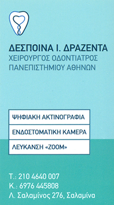 customer tabsΕπικοινωνίαΔέχεται με ραντεβούΧειρουργοί ΟδοντίατροιΥγείαΛεωφ. Σαλαμίνος 276, Σαλαμίνα, ΑττικήΣΑΛΑΜΙΝΑ ΑΤΤΙΚΗΣΠΕΙΡΑΙΑΣ ΑΤΤΙΚΗΣΑΤΤΙΚΗ 2104640007 697445808despoinadrazenta@gmail.com Το προτείνω (έχει προταθεί 0 φορές) ΦωτογραφίεςFacebook LikeShare on FacebookTweet Widget