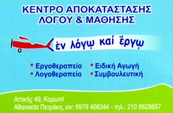customer tabsΕπικοινωνίαΚέντρο Αποκατάστασης Λόγου & ΜάθησηςΕργοθεραπεία - Ειδική Αγωγή - Λογοθεραπεία - ΣυμβουλευτικήΩράριο: Καθημερινά με ραντεβούΛογοπεδικοί - ΛογοθεραπευτέςΥγείαΑττικής 49 (έναντι Μαρινόπουλου), Κορωπί, ΑττικήΚΟΡΩΠΙ ΑΤΤΙΚΗΣΑΤΤΙΚΗ 2106628657 6979408344 Το προτείνω (έχει προταθεί 0 φορές) ΦωτογραφίεςFacebook LikeShare on FacebookTweet Widget