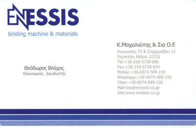 customer tabsΕπικοινωνίαΥλικά βιβλιοδεσίαςΕίδη και Μηχανήματα ΒιβλιοδετικήςΛοιπάΛευκωσίας 79, ΠεριστέριΠΕΡΙΣΤΕΡΙ ΑΤΤΙΚΗΣΑΤΤΙΚΗ 2105730886info@enessis-co.grwww.enessis-co.gr Το προτείνω (έχει προταθεί 0 φορές) ΦωτογραφίεςFacebook LikeShare on FacebookTweet Widget
