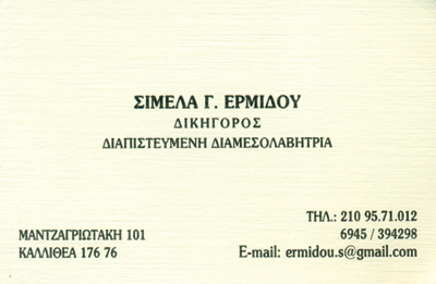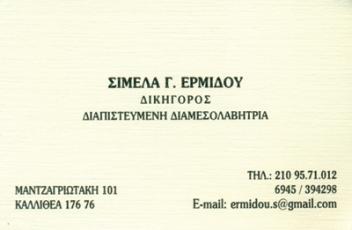 customer tabsΕπικοινωνίαΔικηγόροι και Δικηγορικά ΓραφείαΥπηρεσίεςΜαντζαγριωτάκη 101, 5ος όροφος, ΚαλλιθέαΚΑΛΛΙΘΕΑ ΑΤΤΙΚΗΣΑΤΤΙΚΗ 2109571012 6945394298ermidou.s@gmail.com Το προτείνω (έχει προταθεί 1 φορές) ΦωτογραφίεςFacebook LikeShare on FacebookTweet Widget