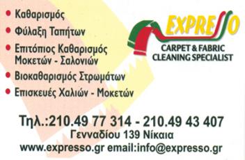 customer tabsΕπικοινωνίαΕπισκευή Χαλιών - ΜοκετώνΒιοκαθαρισμός ΣτρωμάτωνΤαπητοκαθαριστήριοΦύλαξη ΤαπητωνΚαθαρισμός και Φύλαξη Χαλιών Μοκετών και ΤαπήτωνΥπηρεσίεςΓενναδίου 139ΝΙΚΑΙΑ ΑΤΤΙΚΗΣΑΤΤΙΚΗ 2104977317 6936813412 6932631354info@expresso.grwww.expresso.gr Το προτείνω (έχει προταθεί 1 φορές) ΦωτογραφίεςFacebook LikeShare on FacebookTweet Widget