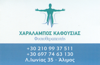 customer tabsΕπικοινωνίαΠλήρες οργανωμένο φυσικοθεραπευτήριοαποκατάστασης ορθοπαιδικών νευρολογικών παθήσεων.Εξοπλισμός φυσικοθεραπευτηρίου με σύγχρονα μηχανήματατελευταίας τεχνολογίας, καλύπτοντας όλες τις ανάγκες τηςφυσικοθεραπευτικής αποκατάστασης.Συμβάσεις με ταμεία για κάθε θεραπευτική πράξη.Υπηρεσίες:Ανάλυση βάδισηςΑυχενικό σύνδρομοΟσφυαλγίεςΑθλητικές κακώσειςΠαθήσεις άνω - κάτω άκρωνΝευρολογικάΟρθοπαιδικά περιστατικάΦυσικοθεραπευτέςΥγείαΛεωφόρος Ιωνίας 35, ΆλιμοςΑΛΙΜΟΣ ΑΤΤΙΚΗΣΑΤΤΙΚΗ 2109937511 6977463130labkaf1@yahoo.grwww.fisiokinisis.com Το προτείνω (έχει προταθεί 0 φορές) ΦωτογραφίεςFacebook LikeShare on FacebookTweet Widget