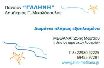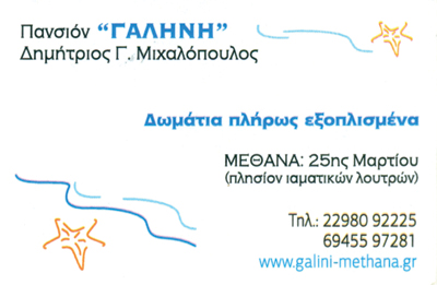 customer tabsΕπικοινωνίαΒρισκόμαστε πολύ κοντά από το συγκρότηματων θειούχων ιαματικών πηγών.Το συγκρότημα αποτελείται απόισόγειο και πρώτο όροφο, με ξεχωριστές εισόδους.Τα δωμάτια μας είναι πλήρως εξοπλισμένακαι έχουν πρόσβαση στον όμορφο κήπο μας.Επίσης, διατείθεται δωρεάν χώρος στάθμευσης.Ενοικιαζόμενα Δωμάτια - ΔιαμερίσματαΤουρισμός25ης Μαρτίου, Λουτρόπολη, ΜέθαναΠΕΙΡΑΙΑΣ ΑΤΤΙΚΗΣΑΤΤΙΚΗ 2298092225 2298092455 6945597281somichalopoulou@gmail.comwww.galini-methana.gr Το προτείνω (έχει προταθεί 0 φορές) ΦωτογραφίεςFacebook LikeShare on FacebookTweet Widget