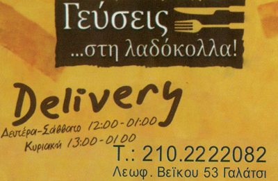 customer tabsΕπικοινωνίαDeliveryWiFiΟΤΕ TVΠρόσβαση ΑΜΕΑΣουβλάκιΧώρος καπνιστώνΨητοπωλεία - ΟβελιστήριαΔιασκέδαση - ΕστίασηΛεωφόρος Βεϊκου 53, ΓαλάτσιΓΑΛΑΤΣΙ ΑΤΤΙΚΗΣΑΤΤΙΚΗ 2102222082 6972874695saganasnikos44@gmail.comΓεύσεις-στη-Λαδόκολλα-Γαλάτσι Το προτείνω (έχει προταθεί 0 φορές) ΦωτογραφίεςFacebook LikeShare on FacebookTweet Widget