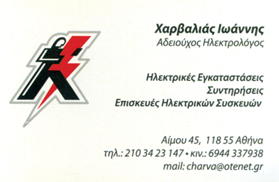 customer tabsΕπικοινωνίαΗλεκτρολόγοιΔόμηση - ΚατοικίαΑίμου 45, ΒοτανικόςΑΘΗΝΑ ΑΤΤΙΚΗΣΑΤΤΙΚΗ 2103423147 6944337938charva@otenet.gr Το προτείνω (έχει προταθεί 1 φορές) ΦωτογραφίεςFacebook LikeShare on FacebookTweet Widget