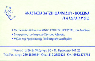 customer tabsΕπικοινωνίαΠαιδίατρος - ΝεογνολόγοςΕκπαιδευθείσα στην Πανεπιστημιακή, Παιδιατρική Κλινική του Νοσοκομείου Παίδων Αγία ΣοφίαΜετεκπαιδευθείσα στην Παιδιατρική Μονάδα του King College Hospital του ΛονδίνουΏρες Λειτουργίας του Ιατρείου: Δευτέρα - Τετάρτη - Παρασκευή με ραντεβούΕπισκέψεις κατ' οίκωνΙατρική Φροντίδα Νεογνών, Νηπίων, Παιδιών, ΕφήβωνΣυμβουλές Θηλασμού - ΔιατροφήςΕκτίμηση Ψυχοκινητικής ΕξέλιξηςΕμβολιασμοί ΠαιδίατροιΥγείαΠλαπούτα 26 & Φλέμινγκ, Είσοδος απο το πλάι, Νέο Ηράκλειο 2102840584 6932375758 Το προτείνω (έχει προταθεί 0 φορές) ΦωτογραφίεςFacebook LikeShare on FacebookTweet Widget
