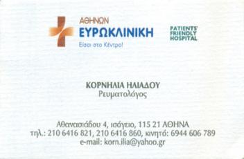 customer tabsΕπικοινωνίαΩράριο ιατρείου:Τρίτη 09:30 - 13:30 & 18:30 - 21:00Ωράριο Ευρωκλινικής:Κάθε Τετάρτη κατόπιν ραντεβούΡευματολόγοιΥγεία2ας Μαϊου 4, Νέα ΣμύρνηΝΕΑ ΣΜΥΡΝΗ ΑΤΤΙΚΗΣΑΤΤΙΚΗ 2109319840 2106416860 - Κλινική 6944606789korni.ilia@yahoo.gr Το προτείνω (έχει προταθεί 0 φορές) ΦωτογραφίεςFacebook LikeShare on FacebookTweet Widget