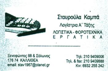 customer tabsΕπικοινωνίαΤήρηση Βιβλίων Όλων των κατηγοριώνΜισθοδοσίες - Φορολογικές ΔηλώσειςΛογιστικές- Φοροτεχνικές ΥπηρεσίεςΥπηρεσίεςΞενοφώντος 88 & Σόλωνος, Καλλιθέα, ΑττικήΚΑΛΛΙΘΕΑ ΑΤΤΙΚΗΣΑΤΤΙΚΗ 2109409006 69322552422109409888 stav1967@otenet.gr Το προτείνω (έχει προταθεί 0 φορές) ΦωτογραφίεςFacebook LikeShare on FacebookTweet Widget