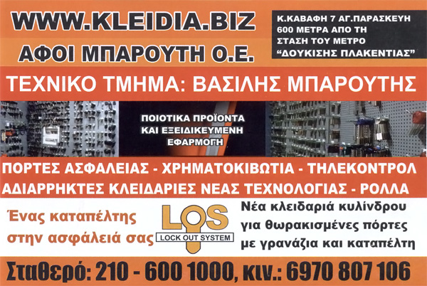 Με βάση αυτά τα κριτήρια, ιδρύσαμε το κατάστημα μας το οποίο λειτουργεί από το 2007, στην περιοχή της Αγίας παρασκευής, επί της οδού Κ.Καβάφη 7 και Αλεξάνδρου Παναγούλη(γωνία). Προσφέρουμε τις υπηρεσίες και τις γνώσεις μας σε ότι έχει σχέση με την ασφάλεια και την προστασία της ακίνητης και κινητής περιουσίας του πολίτη.