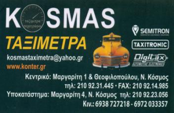 customer tabsΕπικοινωνίαΚοντέρΤαξίΤαχογράφοιΑσφάλειεςΗ εταιρεία KOSMAS λειτουργεί από το 1984 παρέχοντας λύσεις για τον επαγγελματία οδηγό ταξί, που αφορούν, τις επισκευές και ρυθμίσεις των οργάνων του αυτοκινήτου, τις ρυθμίσεις και το service των ταχογράφων. Την επισκευή ψηφιακών κοντέρ αυτοκινήτου και μοτοσυκλέτας πώληση και τοποθέτηση ταξιμέτρων με συνέπεια και εγγύηση ποιότητας. Η εταιρεία είναι κοντά στον επαγγελματία και στον ιδιώτη πάνω από 30 χρόνια σε Αθήνα, Πειραιά και την υπόλοιπη Αττική με συνέπεια και πάντα στις καλύτερες τιμές της αγοράς.Ταχογράφοι - Ταξίμετρα - ΤαχύμετραAUTO - MOTOΜαργαρίτη 1 & Θεοφιλοπούλου, Νέος ΚόσμοςΝΕΟΣ ΚΟΣΜΟΣ ΑΘΗΝΩΝΑΤΤΙΚΗ 2109223056 2109231445 kosmastaximetra@yahoo.grwww.konter.grKosmas Ταξίμετρα Ταχογράφοι Κοντέρ Το προτείνω (έχει προταθεί 1 φορές) ΦωτογραφίεςFacebook LikeShare on FacebookTweet Widget