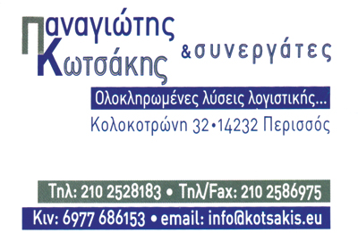 customer tabsΕπικοινωνίαΤήρηση Βιβλίων Β' Γ΄ΚατηγορίαςΕνάρξεις - Μεταβολές - Δηλώσεις φόρου εισοδήματοςΔηλώσεις ακινήτων Ε9, ρυθμίσεις Δ.Ο.Υ - ΕΦΚΑ, πόθεν έσχεςΑνανεώσεις Ο.Α.Ε.Δ, αιτήσεις επιδομάτων, εργατικά.Λογιστικές- Φοροτεχνικές ΥπηρεσίεςΥπηρεσίεςΚολοκοτρώνη 32, ΠερισσόςΝΕΑ ΙΩΝΙΑ ΑΤΤΙΚΗΣΑΤΤΙΚΗ 2102528183 6977686153info@kotsakis.eu Το προτείνω (έχει προταθεί 1 φορές) ΦωτογραφίεςFacebook LikeShare on FacebookTweet Widget