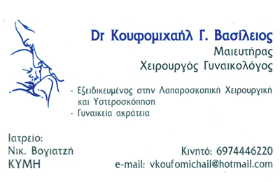customer tabsΕπικοινωνίαΕξειδίκευση στην Λαπαροσκοπική ΧειρουργικήΓυναικεία ΑκράτειαΔέχεται με ραντεβού2o Ιατρείο: Κύμη ΕύβοιαςΜαιευτήρες - ΓυναικολόγοιΓενικοί ΧειρουργοίΥγείαΒασ. Σοφίας 133, Αθήνα, ΑττικήΑΘΗΝΑ ΑΤΤΙΚΗΣΑΤΤΙΚΗ 2106440452 6974446220vkoufomichail@hotmail.com Το προτείνω (έχει προταθεί 0 φορές) ΦωτογραφίεςFacebook LikeShare on FacebookTweet Widget