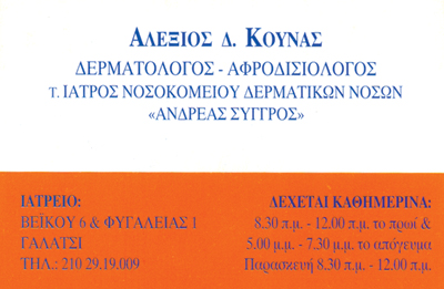 customer tabsΕπικοινωνίαΚλινική ΔερματολογίαΑισθητική ΔερματολογίαΑντιγήρανσηΚαθαρισμός προσώπουΘεραπείες ακμήςΘεραπείες τριχόπτωσηςΘεραπείες καφέ κηλίδωνΘεραπείες ευρυαγγειώνΚρυοθεραπείαPeelingsΔερματοσκόπησηΑποτρίχωση με laser Δερματολόγοι - ΑφροδισιολόγοιΥγείαΛεωφ. Βεΐκου 6 & Φιγαλείας 1, ΓαλάτσιΓΑΛΑΤΣΙ ΑΤΤΙΚΗΣΑΤΤΙΚΗ 2102919009 Το προτείνω (έχει προταθεί 0 φορές) ΦωτογραφίεςFacebook LikeShare on FacebookTweet Widget