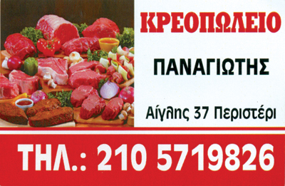 customer tabsΕπικοινωνίαΚρεοπωλείαΛοιπάΑίγλης 37, Χρυσούπολη Περιστερίου, ΑττικήΠΕΡΙΣΤΕΡΙ ΑΤΤΙΚΗΣΑΤΤΙΚΗ 2105719826 6941672018 Το προτείνω (έχει προταθεί 1 φορές) ΦωτογραφίεςFacebook LikeShare on FacebookTweet Widget