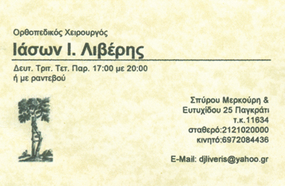 customer tabsΕπικοινωνίαΔέχεται 17:30 -20:30 εκτός Πέμπτης Κατόπιν ΡαντεβούΟρθοπεδικοί ΙατροίΥγείαΕυτυχίδου 25, ΠαγκράτιΠΑΓΚΡΑΤΙ ΑΤΤΙΚΗΣΑΤΤΙΚΗ 2121020000 6972084436djliveris@yahoo.gr Το προτείνω (έχει προταθεί 0 φορές) ΦωτογραφίεςFacebook LikeShare on FacebookTweet Widget