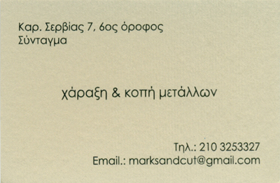 Το εργαστήριο δραστηριοποιείται στην κοπή και τη χάραξη μεταλλικών επιφανειών