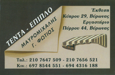 customer tabsΕπικοινωνίαΤέντες - Συστήματα Σκίασης - Έπιπλα Εσωτερικού και Εξωτερικού Χώρου Τέντες και ΣκηνέςΈπιπλα ΓενικάΣυστήματα ΣκίασηςΔόμηση - ΚατοικίαΈκθεση: Κύπρου 31, Βύρωνας, ΑττικήΕργαστήριο: Πύρρου 44, ΒύρωναςΒΥΡΩΝΑΣ ΑΤΤΙΚΗΣΑΤΤΙΚΗ 2107647509 2107656521 6944316188fortsa_leon@yahoo.gr Το προτείνω (έχει προταθεί 0 φορές) ΦωτογραφίεςFacebook LikeShare on FacebookTweet Widget