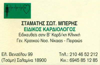 customer tabsΕπικοινωνίαΕιδικός καρδιολόγοςΔέχεται καθημερινά 18:00-21:00 με ραντεβούΕπισκέψεις κατ'οίκον με ραντεβούΚαρδιολόγοιΥγείαΕλευθερίου Βενιζέλου 99, Τσάμη, ΣαλαμίναΣΑΛΑΜΙΝΑ ΑΤΤΙΚΗΣΠΕΙΡΑΙΑΣ ΑΤΤΙΚΗΣΑΤΤΙΚΗ 2104652212 69458512852104652212beris_kardiologos@yahoo.gr Το προτείνω (έχει προταθεί 0 φορές) ΦωτογραφίεςFacebook LikeShare on FacebookTweet Widget