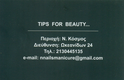 customer tabsΕπικοινωνίαΥπηρεσίες ομορφιάςΜανικιούρ - ΠεντικιούρΟμορφιάΩκεανίδων 24, Νέος Κόσμος, ΑθήναΝΕΟΣ ΚΟΣΜΟΣ ΑΘΗΝΩΝΑΤΤΙΚΗ 2130445135nnailsmanicure@gmail.com Το προτείνω (έχει προταθεί 0 φορές) ΦωτογραφίεςFacebook LikeShare on FacebookTweet Widget