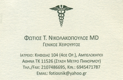 customer tabsΕπικοινωνίαΧειρ/κη Μαστού, Προληπτικός έλεγχος Μαστού, Χειρ/κη Θυροειδούς - Πεπτικού, (στομάχου εντέρου), Χολυκυστεκτομή, Κήλες, Μηροκήλη, Βουβονοκήλη, Ραγάδες, Αιμοροϊδες, ΣυρίγγιαΔέχεται με ραντεβούΓενικοί ΧειρουργοίΥγείαΚηφισίας104, Αμπελόκηποι, ΑττικήΑΜΠΕΛΟΚΗΠΟΙ ΑΤΤΙΚΗΣΑΤΤΙΚΗ 2107486695 6945471787fotiosnik@yahoo.gr Το προτείνω (έχει προταθεί 0 φορές) ΦωτογραφίεςFacebook LikeShare on FacebookTweet Widget
