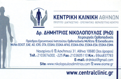customer tabsΕπικοινωνίαΟρθοπαιδικός Χειρουργός με εξειδίκευση στην αρθροσκοπική αποκατάσταση των Αθλητικών Κακώσεων Γόνατος, Ισχίου, Ώμου,Ποδοκνημικής, όπως και στην Αντιμετώπιση και Χειρουργική Αποκατάσταση των παθήσεων του Άκρου Πόδα.Ασχολείται με τους συνεργάτες του με την Αρθροσκοπική Αποκατάσταση της Παθολογίας του Ισχίου.Ορθοπεδικοί ΙατροίΧειρούργοι ΟρθοπεδικοίΥγείαΝαυαρίνου 6 & Ασκληπιού, ΑθήναΑΘΗΝΑ ΑΤΤΙΚΗΣΑΤΤΙΚΗ 2103674999 6944837783drdnikol@gmail.comwww.nikolopoulosdimitrios.comDimitrios Nikolopoulos Το προτείνω (έχει προταθεί 0 φορές) ΦωτογραφίεςFacebook LikeShare on FacebookTweet Widget