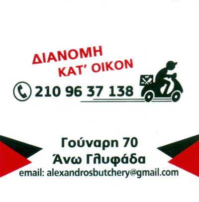 customer tabsΕπικοινωνίαΚρεοπωλείοΚρεαταγοράΜπριζόλεςΜοσχάριΣουβλάκιαΑρνιάΚοτόπουλα ΧοιρινάΚρεοπωλείαΝωπά ΚρέαταΛοιπάΓούναρη 70, ΓλυφάδαΓΛΥΦΑΔΑ ΑΤΤΙΚΗΣΑΤΤΙΚΗ 2109637138alexandrosbutchers@gmail.comΚρεοπωλείο "Ο Αλέξανδρος" Το προτείνω (έχει προταθεί 1 φορές) ΦωτογραφίεςFacebook LikeShare on FacebookTweet Widget