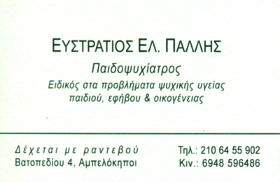 customer tabsΕπικοινωνίαΕιδικός στα ψυχικά προβλήματα υγείας Παιδιού, Εφήβου & ΟικογένειαςΠαιδοψυχίατροιΥγείαΒατοπεδίου 4, Αμπελόκηποι, ΑττικήΑΜΠΕΛΟΚΗΠΟΙ ΑΤΤΙΚΗΣΑΤΤΙΚΗ 2106455902 6948596486 Το προτείνω (έχει προταθεί 0 φορές) ΦωτογραφίεςFacebook LikeShare on FacebookTweet Widget