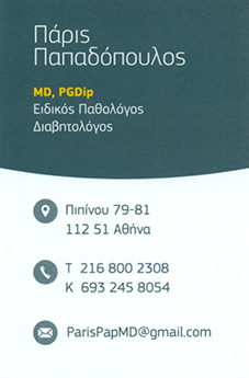 customer tabsΕπικοινωνίαΔέχεται καθημερινά εκτός ΠαρασκευήςΠαθολόγοιΔιαβητολόγοιΥγείαΠιπίνου 79 -81, Αγ. Παντελεήμονας, Αθήνα, ΑττικήΑΘΗΝΑ ΑΤΤΙΚΗΣΑΤΤΙΚΗ 2168002308 6932458054parispapmd@gmail.com Το προτείνω (έχει προταθεί 0 φορές) ΦωτογραφίεςFacebook LikeShare on FacebookTweet Widget