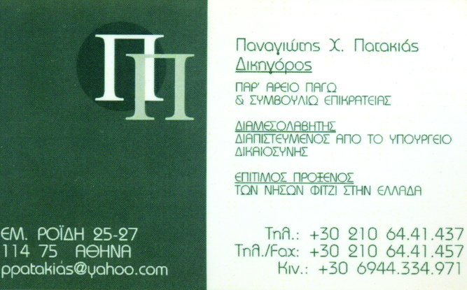 customer tabsΕπικοινωνίαΔικηγόροι και Δικηγορικά ΓραφείαΔιαπιστευμένος ΔιαμεσολαβητήςΥπηρεσίεςΡοΐδη Εμμανουήλ 25, ΑθήναΑΘΗΝΑ ΑΤΤΙΚΗΣΑΤΤΙΚΗ 2106441437 69443349712106441457ppatakias@yahoo.com Το προτείνω (έχει προταθεί 0 φορές) ΦωτογραφίεςFacebook LikeShare on FacebookTweet Widget
