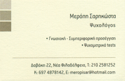 customer tabsΕπικοινωνίαΚατάθλιψη - Κρίσεις πανικού - Φοβίες - Ιδεοληψίες - Ιδεοψυχαναγκαστική θεραπεία - Πένθος.ΨυχολόγοιΥγείαΣυνταγματάρχου Δαβάκη 22 , Νέα ΦιλαδέλφειαΝΕΑ ΦΙΛΑΔΕΛΦΕΙΑ ΑΤΤΙΚΗΣΑΤΤΙΚΗ 2102581252 6974878142meropisar@hotmail.com Το προτείνω (έχει προταθεί 0 φορές) ΦωτογραφίεςFacebook LikeShare on FacebookTweet Widget