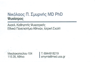 customer tabsΕπικοινωνίαΨΥΧΙΑΤΡΟΣ ΨΥΧΟΘΕΡΑΠΕΥΤΗΣΑΝΑΠΛΗΡΩΤΗΣ ΚΑΘΗΓΗΤΗΣ ΨΥΧΙΑΤΡΙΚΗΣΙΑΤΡΙΚΗ ΣΧΟΛΗΕΘΝΙΚΟ ΚΑΙ ΚΑΠΟΔΙΣΤΡΙΑΚΟ ΠΑΝΕΠΙΣΤΗΜΙΟ ΑΘΗΝΩΝΑΙΓΙΝΗΤΕΙΟ ΝΟΣΟΚΟΜΕΙΟΨυχίατροιΥγείαΜιχαλακοπούλου 104, ΑθήναΑΘΗΝΑ ΑΤΤΙΚΗΣΑΤΤΙΚΗ 2107217059 6944918219smyrnis@med.uoa.grhttp://scholar.uoa.gr/smyrnis Το προτείνω (έχει προταθεί 0 φορές) ΦωτογραφίεςFacebook LikeShare on FacebookTweet Widget
