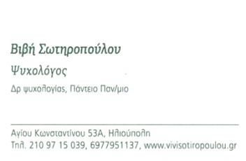 customer tabsΕπικοινωνίαΔιαταραχές άγχους - Σεξουαλικές διαταραχές.ΨυχολόγοιΥγείαΑγίου Κωνσταντίνου 53Α, ΗλιούποληΗΛΙΟΥΠΟΛΗ ΑΤΤΙΚΗΣΑΤΤΙΚΗ 2109715039 6977951137vivisotiropoulou@hotmail.comhttp://vivisotiropoulou.gr Το προτείνω (έχει προταθεί 0 φορές) ΦωτογραφίεςFacebook LikeShare on FacebookTweet Widget