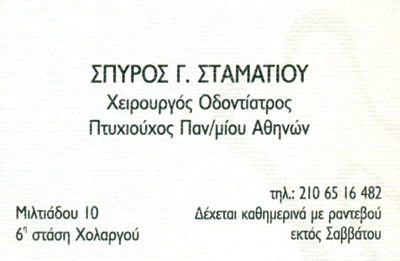 customer tabsΕπικοινωνίαΚαθημερινά με ραντεβού.Χειρουργοί ΟδοντίατροιΟδοντίατροιΥγείαΜιλτιάδου 10, 4ος όροφος, ΧολαργόςΧΟΛΑΡΓΟΣ ΑΤΤΙΚΗΣΑΤΤΙΚΗ 2106516482 6979091131stamatiousspd@ath.forthnet.gr Το προτείνω (έχει προταθεί 0 φορές) ΦωτογραφίεςFacebook LikeShare on FacebookTweet Widget