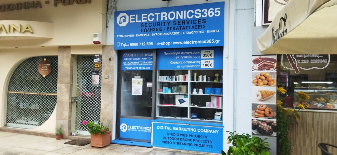 Συναγερμοί σπιτιών, Κάμερες ασφαλείας, Συναγερμοί επιχειρήσεων, Συστήματα κλειστού κυκλώματος (C.C.TV), Θυροτηλεοράσεις, Ηλεκτρονικά είδη, Υπολογιστές, Κινητά, Service – Επισκευές, Live Streaming Projects και Outdoor Drone Projects, Web Projects, Κατασκευή & Φιλοξενία Ιστοσελίδων κλπ.