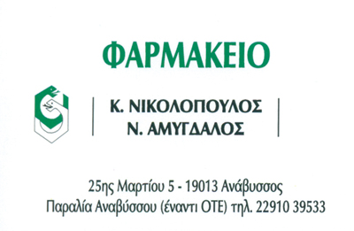 customer tabsΕπικοινωνίαΦαρμακείαΥγεία25ης Μαρτίου 5, ΑνάβυσσοςΑΝΑΒΥΣΣΟΣ ΑΝΑΤΟΛΙΚΗΣ ΑΤΤΙΚΗΣΑΤΤΙΚΗ 2291039533 69441870102291078109farmknpar@gmail.com Το προτείνω (έχει προταθεί 0 φορές) ΦωτογραφίεςFacebook LikeShare on FacebookTweet Widget