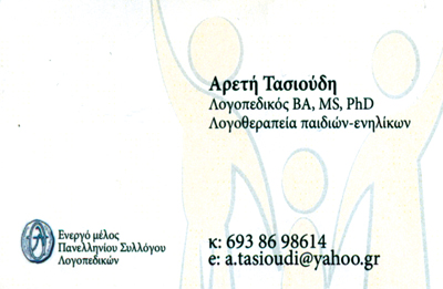 customer tabsΕπικοινωνίαΕπισκέψεις κατ'οικονΣυμβεβλημένη με όλα τα ταμείαΒασιλάκης ΜάριοςΠαιδίατρος Εργοθεραπευτής S.I.Θεραπεία κατ'οίκονe-mail: mariosvasilakis@hotmail.comΛογοπεδικοί - ΛογοθεραπευτέςΥγείαΛεωφόρος Ιωνίας 107, Άλιμος, ΑττικήΑΛΙΜΟΣ ΑΤΤΙΚΗΣΑΤΤΙΚΗ 2114058743 6938698614atasioudi@yahoo.gr Το προτείνω (έχει προταθεί 0 φορές) ΦωτογραφίεςFacebook LikeShare on FacebookTweet Widget