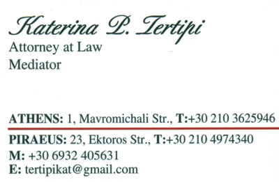 customer tabsΕπικοινωνίαΔικηγόροι και Δικηγορικά ΓραφείαΔιαπιστευμένος ΔιαμεσολαβητήςΥπηρεσίεςΈκτορος 232ο Γραφείο: Μαυρομιχάλη 1, 3ος όροφος, Αθήνα Τηλ.: 2103625946ΚΟΡΥΔΑΛΛΟΣ ΑΤΤΙΚΗΣΑΤΤΙΚΗΑΘΗΝΑ ΑΤΤΙΚΗΣ 2104974340 6932405631tertipikat@gmail.com Το προτείνω (έχει προταθεί 0 φορές) ΦωτογραφίεςFacebook LikeShare on FacebookTweet Widget
