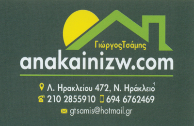 customer tabsΕπικοινωνίαΗ εταιρεία anakainizw.com ασχολείται με την ανακαίνισητου χώρου σας, είτε αυτός είναι επαγγελματικός, είτε είναι το σπίτι σας.Στόχος της εταιρίας είναι να βρίσκει λύσεις σταπροβλήματα και στις ανάγκες των πελατών τηςμε απόλυτη ακρίβεια και σαφήνεια. Η εταιρεία anakainizw.com διεκπεραιώνει επιτυχώς ανακαινίσεις οικίας.Σε περίπτωση που θέλετε να αλλάξετε το χώρο σας λόγωανανέωσης τα ποιοτικά και διαχρονικά σχέδια μας σε είδη υγιεινής,πλακάκια, κουζίνες, κουφώματα, θωρακισμένες καθώςκαι εσωτερικές πόρτες θα καλύψουν επαρκώς τις προσδοκίες σας. Η εταιρεία anakainizw.com αναλαμβάνει ανακαινίσεις μπάνιου.Για να επιτευχθεί σωστά μια ανακαίνιση, ειδικά μία τόσο σημαντική,όσο αυτή του μπάνιου και να έχει αντοχή στο χρόνο,χρειάζεταινα γίνει σωστή αλλαγή πρώτα στα σημεία που δε φαίνονταικαι έπειτα σε εκείνα που με χαρά θα χρησιμοποιήσετεεσείς και η οικογένειά σας.Για αυτό η διεκπεραίωση της ανακαίνισης θα γίνει με άρισταυλικά και θα περιλαμβάνει τη νέα εγκατάσταση υδραυλικών του μπάνιου,τη νέα αποχέτευση σε δάπεδο και λεκάνη, απoξήλωσηπαλαιών πλακιδίων και ειδών υγιεινής, τοποθέτησηπλακιδίων καθώς και ηλεκτρολογικές αλλαγές.Υδραυλικές Εργασίες και ΕγκαταστάσειςΑνακαινίσεις ΧώρωνΕίδη ΥγιεινήςΔόμηση - ΚατοικίαΛεωφόρος Ηρακλείου 472, ΗράκλειοΗΡΑΚΛΕΙΟ ΑΤΤΙΚΗΣΑΤΤΙΚΗ 2102855910 6946762469gtsamis@hotmail.grwww.anakainizw.comΑνακαινίσεις-Υδραυλικές υπηρεσίες Γιώργος Τσάμης Το προτείνω (έχει προταθεί 0 φορές) ΦωτογραφίεςΠροσφορές ΑΝΑΚΑΙΝΙΣΕΙΣ-ΥΔΡΑΥΛΙΚΕΣ ΥΠΗΡΕΣΙΕΣ ΓΙΩΡΓΟΣ ΤΣΑΜΗΣFacebook LikeShare on FacebookTweet Widget