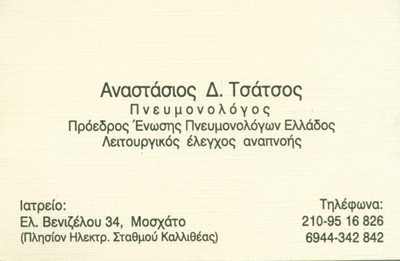 customer tabsΕπικοινωνίαΠνευμονολογικός Έλεγχος, Λειτουργικός Ελεγχος αναπνοήςΣπιρομέτρηση, Χαπ, Δέχεται Δευτέρα - Τετάρτη - Πέμπτη με ραντεβούΠνευμονολόγοι - ΦυματιολόγοιΥγείαΕλ. Βενιζέλου (πρώην Γράμμου) 34, Μοσχάτο, ΑττικήΜΟΣΧΑΤΟ ΑΤΤΙΚΗΣΑΤΤΙΚΗ 2109516826 6944342842 Το προτείνω (έχει προταθεί 1 φορές) ΦωτογραφίεςFacebook LikeShare on FacebookTweet Widget