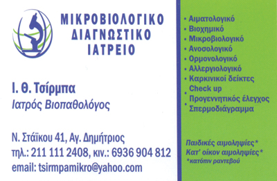 customer tabsΕπικοινωνίαΜικροβιολόγοι - ΒιοπαθολόγοιΥγείαΝίκου Στάϊκου 41, Άγιος ΔημήτριοςΑΓΙΟΣ ΔΗΜΗΤΡΙΟΣ ΑΤΤΙΚΗΣΑΤΤΙΚΗ 2111112408 6936904812tsirmpamikro@yahoo.comhttps://mikroviologos-tsirmpa.gr Το προτείνω (έχει προταθεί 0 φορές) ΦωτογραφίεςFacebook LikeShare on FacebookTweet Widget
