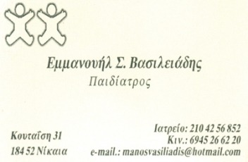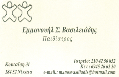 customer tabsΕπικοινωνίαΠαιδίατροιΥγείαΚουταΐση 31, ΝίκαιαΝΙΚΑΙΑ ΑΤΤΙΚΗΣΑΤΤΙΚΗ 2104256852 6945266220manosvasiliadis@hotmail.com Το προτείνω (έχει προταθεί 0 φορές) ΦωτογραφίεςFacebook LikeShare on FacebookTweet Widget