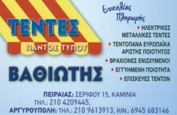 customer tabsΕπικοινωνίαΕμπορία, κατασκευή και τοποθέτηση παντός είδους τέντες.Τέντες και ΣκηνέςΔόμηση - ΚατοικίαΣερίφου 15, Πειραιάς, ΑττικήΠΕΙΡΑΙΑΣ ΑΤΤΙΚΗΣΝΕΟ ΦΑΛΗΡΟ ΑΤΤΙΚΗΣΑΤΤΙΚΗ 2109613913 6945683146Τεντες Βαθιωτης Το προτείνω (έχει προταθεί 0 φορές) ΦωτογραφίεςFacebook LikeShare on FacebookTweet Widget