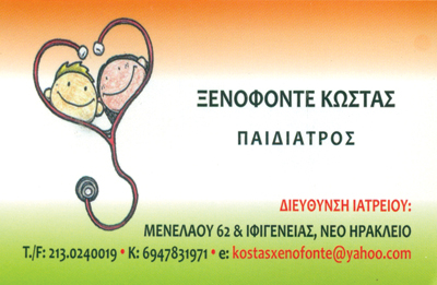 customer tabsΕπικοινωνίαΣτο παιδιατρικό ιατρείο προσέρχονται βρέφη και παιδιά για εμβολιασμούς, παρακολούθηση ανάπτυξηςβρεφών και παιδιών, σωματομετρήσεις, προληπτικά προγράμματα, παρακολούθηση εφήβων για τηνολοκλήρωση των εμβολιασμών τους, εφαρμογή προληπτικών προγραμμάτων και παροχή συμβουλώνσε θέματα που τους ενδιαφέρουν.ΠαιδίατροιΥγείαΜενελάου 62 & Ιφιγενείας, Νέο ΗράκλειοΗΡΑΚΛΕΙΟ ΑΤΤΙΚΗΣΑΤΤΙΚΗ 2130240019 6947831971kostasxenofonte@yahoo.com Το προτείνω (έχει προταθεί 0 φορές) ΦωτογραφίεςFacebook LikeShare on FacebookTweet Widget