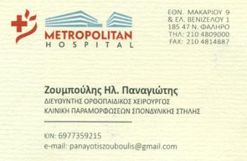 Metropolitan Hospital, Ν. Φάληρο (Διευθυντής Κλινικής Παραμορφώσεων ΣΣ, 2016 – σήμερα)